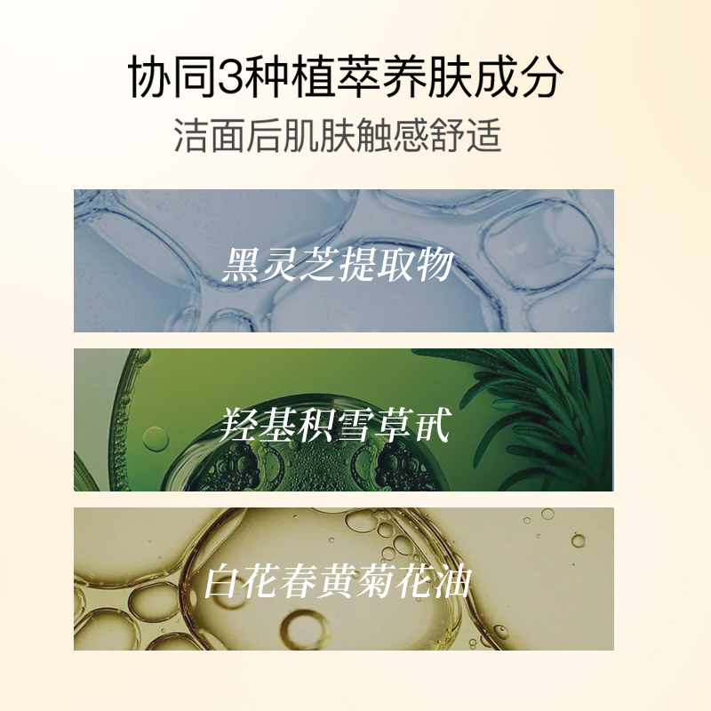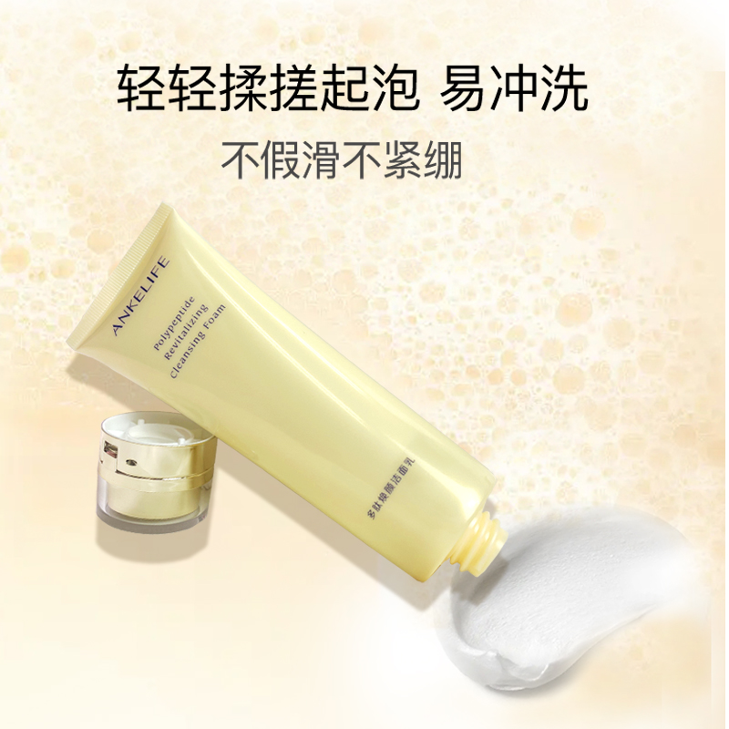 多肽煥顏潔面乳多肽成分及雙重氨基酸潔凈配方,清潔深層污垢的同時守護肌膚水潤,令皮膚清透滋潤;弱酸性,性質溫和、親水性易沖洗,潔面后肌膚觸感舒適、柔嫩、通透!