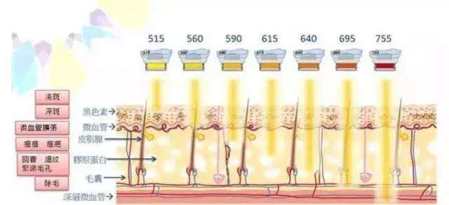 作用原理上,是應用選擇性光熱作用,皮膚中的不同分子會選擇性地吸收對應波長的光,從而實現選擇性的治療效果。